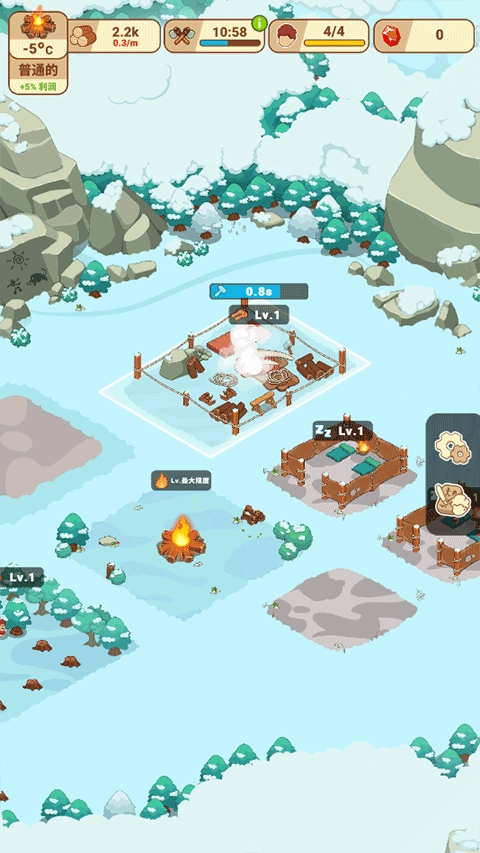 冰河时代生存大亨这款模拟经营类游戏将玩家带入了原始冰河时代的艰难环境,展现了在极端生存条件下的人类奋斗与智慧。游戏的背景设定在冰雪覆盖、资源匮乏的时代,玩家将扮演一位部落的领袖,带领着自己的队伍在这片荒凉的土地上生存下去。玩家需要根据周围环境的变化,带领村民进行冒险,寻找食物、水源、木材、石材等必需资源,并利用这些资源为部落建设住所、制作工具、培养技能等,从而确保村民的生存和部落的繁荣。