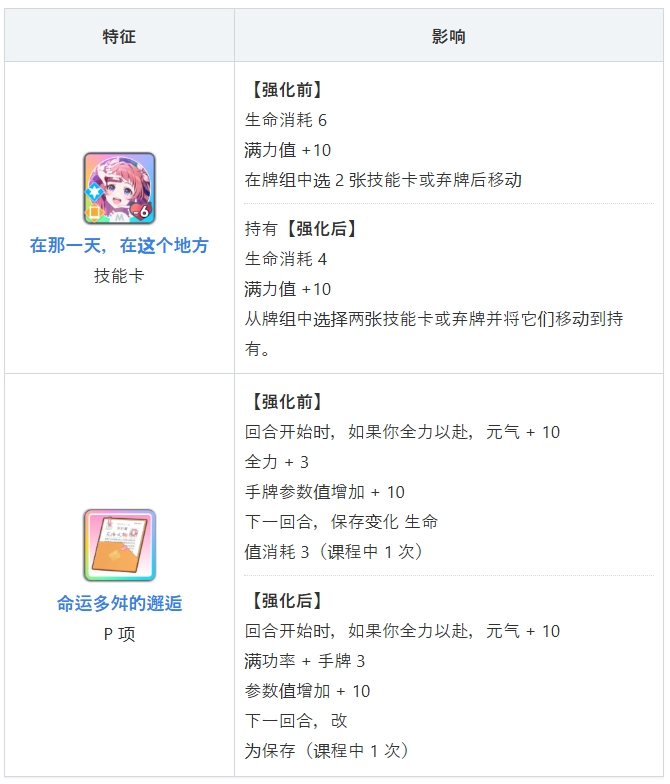 2、技能卡和 P 物品的效果