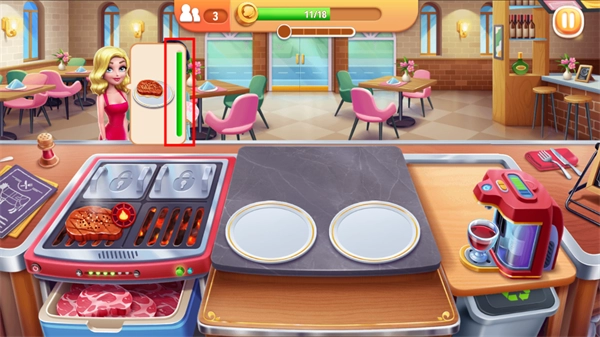 4、注意蓝色框框内的进度条,不要让食物糊了