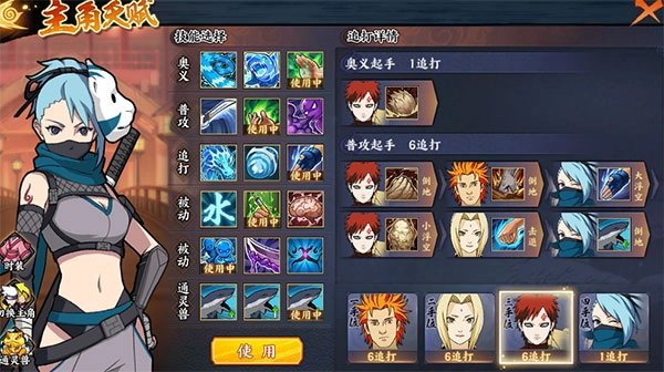 Tip:伤害系数不高,主要作用在于混乱,具有控制或者打断的战略意义且必杀时可以获得一次额外普攻,所以前期纲手的奥义不着急交,等必杀再释放多治疗一次或许可以扭转乾坤;