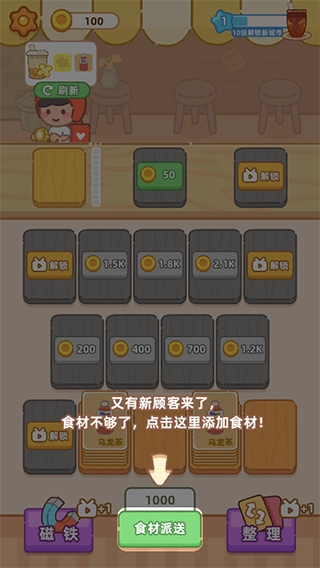 4、食材满十张了就可以给顾客做奶茶了