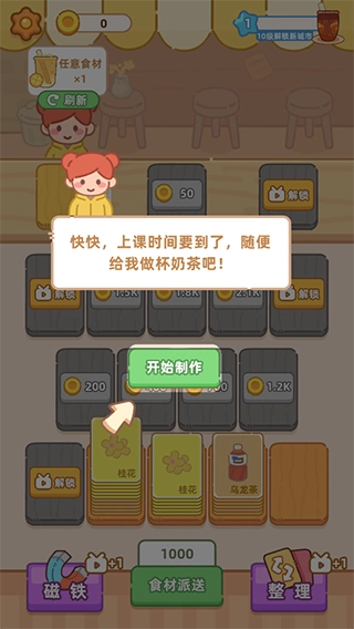 【收集卡牌】通过满足各种订单需求,来解锁更多食材和奶茶款式,打造梦想中的奶茶铺!