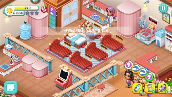 时光疗愈院免费版是一款以医院经营为核心题材的模拟经营类手游,以紧张而富有挑战性的节奏,为玩家呈现了一个真实而生动的医疗世界。玩家将扮演一位医院的管理者,肩负起救治病患、优化医疗资源、提升医院整体水平的重任。在有限的时间内,你需要迅速判断病情、调配资源,确保每一位病人都能及时得到妥善的治疗,避免病情恶化。