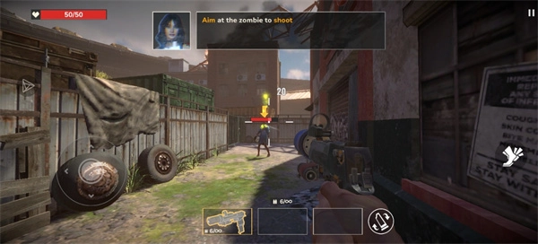 3、开始我们的首次战斗,这里将准星瞄准僵尸。