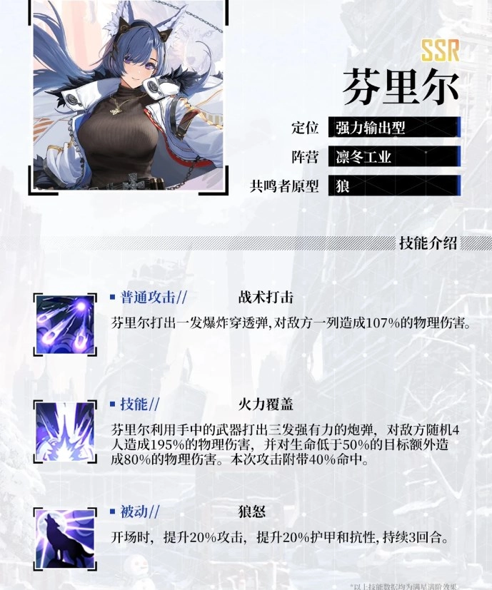 她致力于推动凛冬工业针对共鸣者和回响水晶的研究,并取得了重大突破。