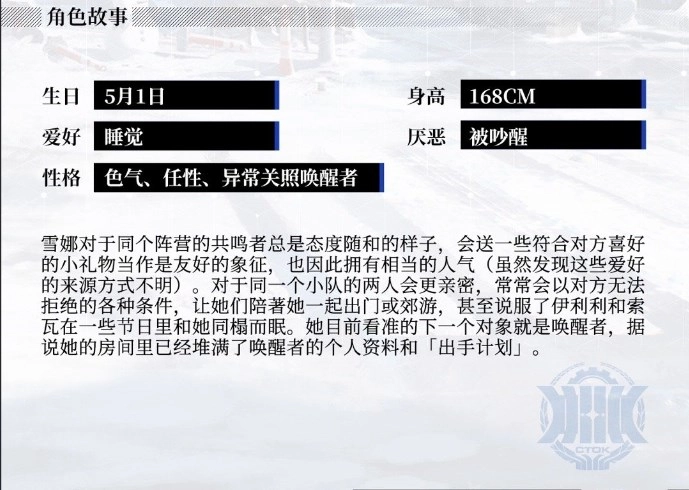 出身于凛冬的雪娜有相当丰富的人脉资源和情报来源,哪怕是其它势力的情报,她也能轻松获取。