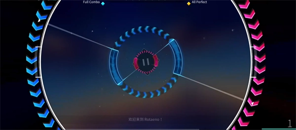 现在终于要介绍Rotaeno的精髓,ROTATE音符了!在红色ROTATE音符与判定圈重叠的瞬间,顺时针高速旋转手机!蓝色ROTATE音符则是需要逆时针高速旋转手机!