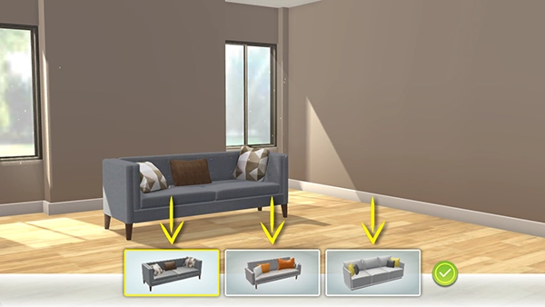 3、选择你要换的新沙发,之后点击“√”确认就可以;