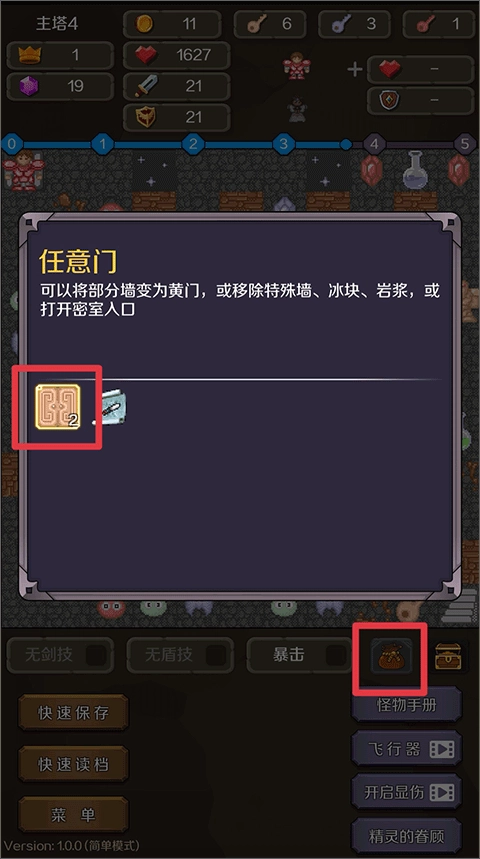 4、例如“任意门”,使用后可以将某些墙壁转换为黄门,或移除特殊障碍,如冰块、岩浆,甚至打开隐秘密室入口。