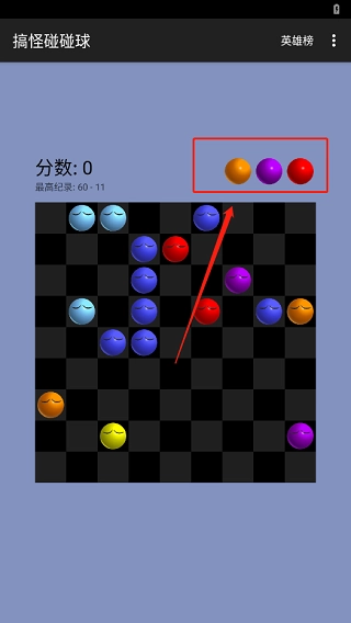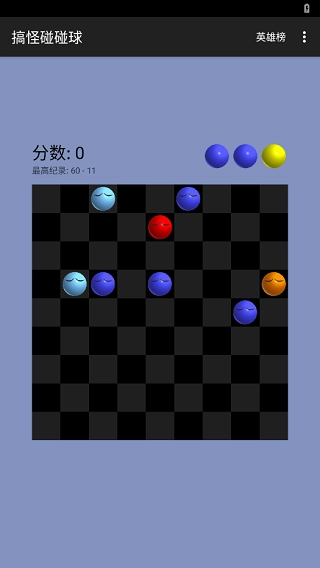 当画面中的空格全部被小球填满,且小球无法再移动时,游戏即宣告结束。一次性消去5颗球能获得10分,在此基础上,每多消去一颗球,就额外增加5分。搞怪碰碰球游戏结束后会有成绩排名,玩家可以通过此排名查看自己的成绩是否有所进步。