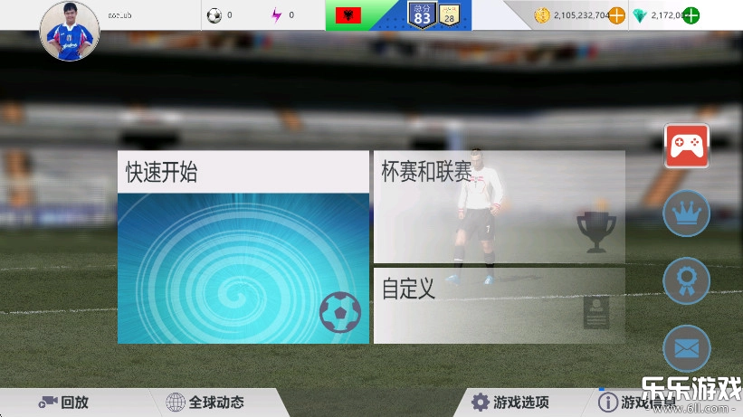 主界面点击“球队阵容”,进入11人卡牌布局的足球场界面。