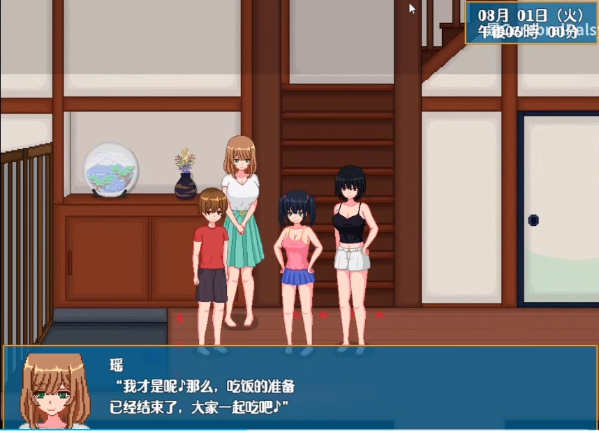 到了晚上(最好先消耗完行动点,不要触发跳过晚上的对话),点晚上那个时间,选择深夜,就会看到他们都睡了,去客厅点电视,就会获得冲进浴室技能。。