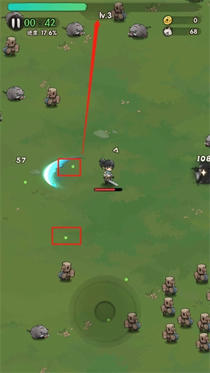 1、游戏中的玩法与传统肉鸽游戏类似,我们需要击败敌人获得经验,拾取经验满后可升级一次
