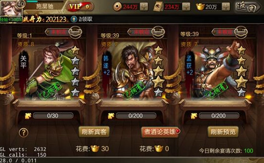 -通过城池中的客栈按钮,可进入客栈。在客栈中可宴请指定3名武将,宴请武将后有一定几率获得大量将魂。