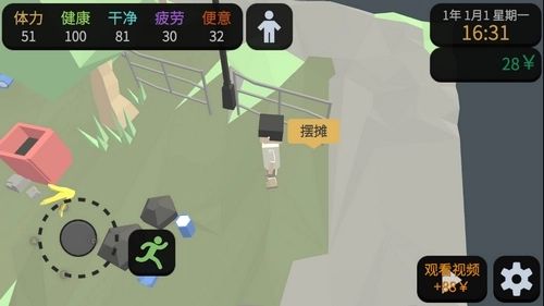 1、在刚开始游戏时,萝卜就发现了新增的功能!我们可以在游戏中跑步了!在左侧方向键的边上,便是跑步与行走模式的切换按钮,点击该按钮后我们便能在地图中移动的更快了!但要注意的是,跑步消耗的体力速度极快,在前期还亟需用体力打工换取金钱的阶段,萝卜并不建议大家过多使用。