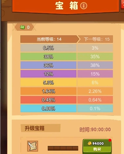3、金币的话建议优先升级宝箱的等级,多完成任务获取多一点的宝箱,在等宝箱升级期间,尽可能的凑够下级宝箱升级的金币,争取在宝箱升级后尽快的进入下一个升级阶段,宝箱的阶段越高,开出来的装备品质就好。