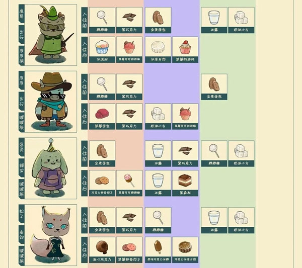 供奉的食物,若无咕咚喜爱(或喜爱该食物的咕咚都已入住),则不反感该食物的咕咚随机到访一个。
