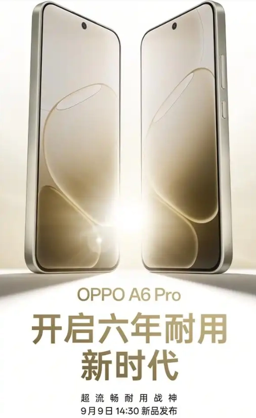 9月4日消息,OPPO今日官宣,OPPOA6Pro将于9月9日14:30发布,开启手机六年耐用新时代。