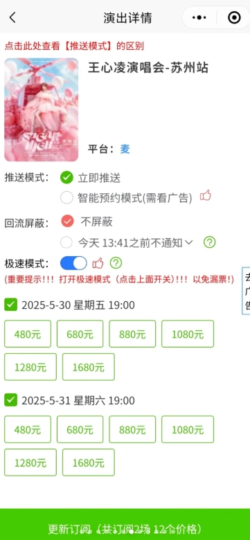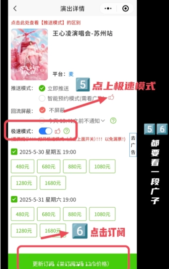 图七:5⃣重点:一定要点开极速模式,防止错过!6⃣全部选择好后点击订阅