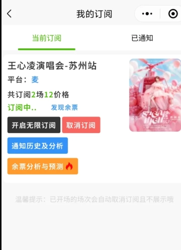 图十二:有票的话就会收到通知啦,亲测有效,成功抢到想要的票!