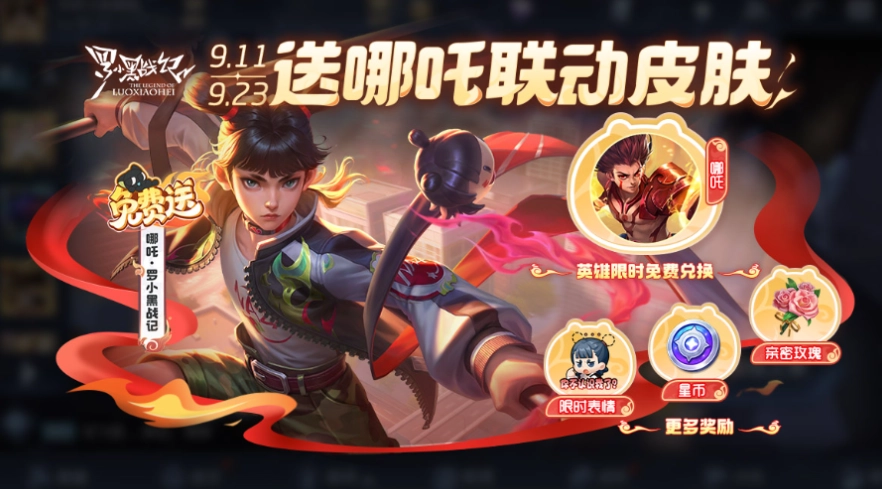 各位《王者荣耀》玩家注意!游戏与《罗小黑战记》联动惊喜来袭,三款免费皮肤将依次登场。目前,哪吒的联动皮肤已上线,其设计融合原作哪吒形象,标志性丸子头、特色服饰等元素一应俱全。从9月11日起,参与游戏内指定活动,就能免费把这款皮肤带回家,后续两款皮肤获取方式也将陆续公布。