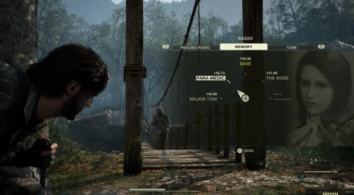 用叉子在治疗菜单取出假死药与发信器。等守卫巡逻时他会把食物丢给斯内克,直接把食物还回去,等他再次巡逻过来,重复此操作3次触发过场动画,守卫就会给你烟雾麻醉枪,等他再次送食物时拾取,趁守卫看着你的时候用烟雾麻醉枪把守卫打晕,把无线电调整到144.75打开门锁,搜刮守卫的烟雾弹,保证体力充足(使用治疗频率)。