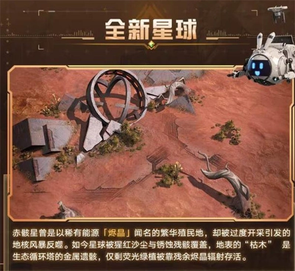 特点:曾因稀有能源“烬晶”而繁荣,因过度开采引发地核风暴,如今被沙尘与残骸覆盖。