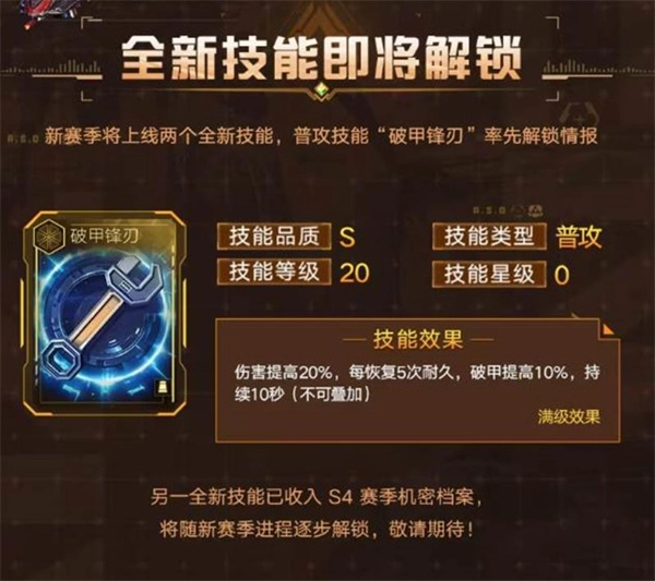 每恢复5次耐久,破甲+10%,持续10秒(不可叠加)