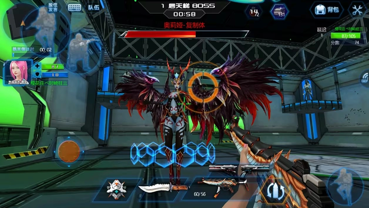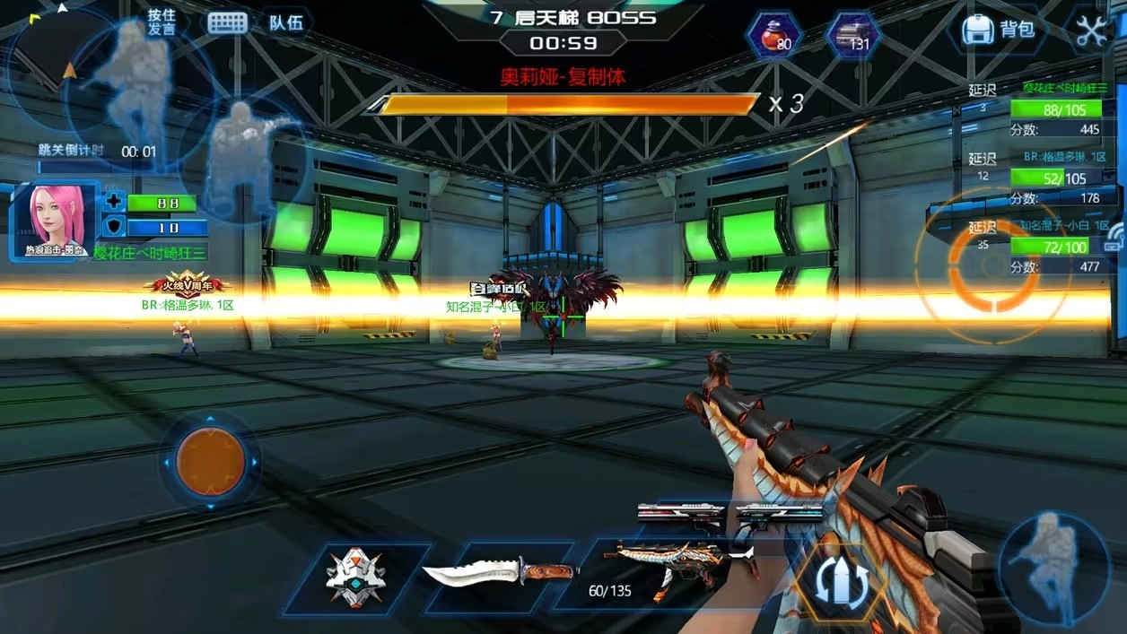然后再看看这个,这是两道奥特激……hetui,两道激光,会围绕着boss旋转,这时候你就需要学一学秦王绕柱子的攻略了,而女王呢,就是那个柱子。这个伤害比较高,被扫到很酸爽的说。