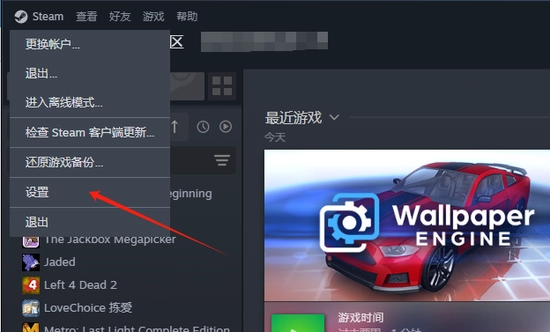 steam家庭共享,我们需要将steam切换至测试版本,登录steam,左上角点击设置