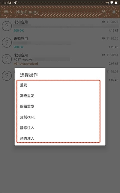 4、长按抓到的数据包,可以进行一系列的操作。像重发啊,编辑请求再发送等等。