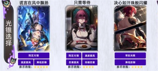综合推荐顺序:专属光锥 > 只需等待 > 决心如汗珠般闪耀