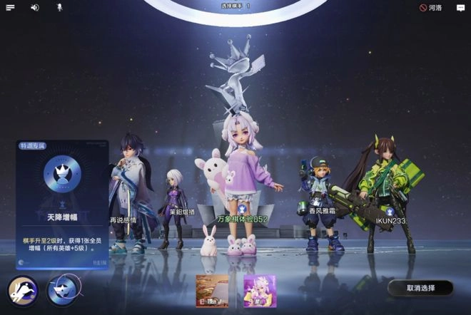 到了第二局,我在一番激烈的精神斗争下放弃了玉环,转而选择了旁边的嫦小娥。因为嫦小娥在本局拥有“特邀”标签,带有这个标签的棋手,会额外携带一个较为实用的特邀技能。正是凭借这个特邀技能,我才在开局时就通过一张额外的“全员增幅”建立了前期优势,为后续滚雪球打下了基础。