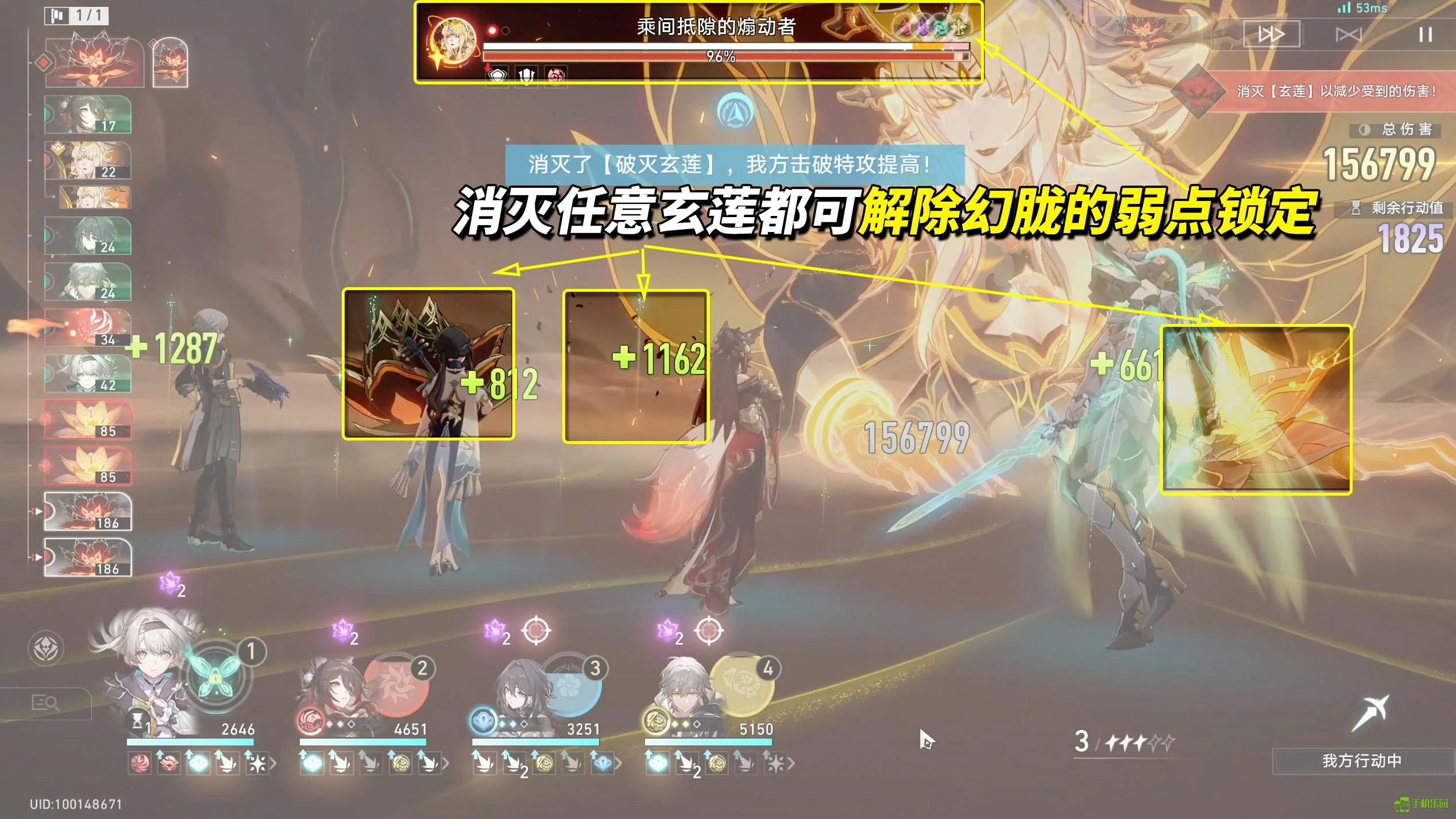 策略相当纯粹,当幻胧锁定弱点时,你就攻击玄莲,这样能够解除弱点锁定,还能额外削减韧性,并扣除19万生命值。在这之后,正常攻击幻胧本体就行,要知道她的韧性长度可比碎星王虫短很多。