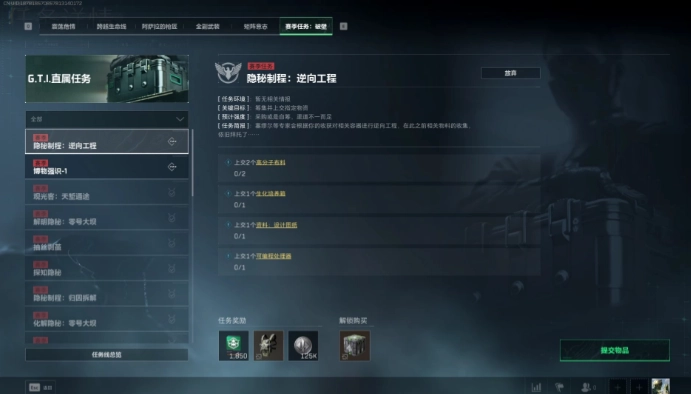 在《三角洲行动》S5 赛季里,隐秘制程逆向工程任务颇具挑战。玩家需上交 2 个高分子布料、1 个生化培养箱、1 个设计图纸资料以及 1 个可编程处理器。这些物品从哪儿获取?在行动中又该注意什么?想快速攻克此任务,获取丰厚奖励吗?感兴趣的小伙伴快来看一看!