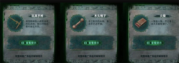 1、入内后,点击右下地板门,放上【玩具手枪】,获得【直尺】。