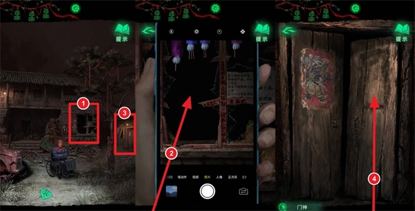 3、返回村口,点击右侧香炉,用手机查看内部,再将【豆奶】投入香炉缺口,获得【门神】。