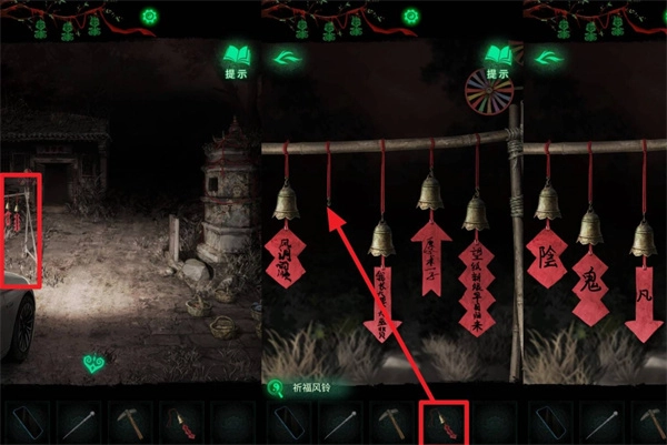 3、将【祈福风铃】挂在车旁架子,获取密码线索。
