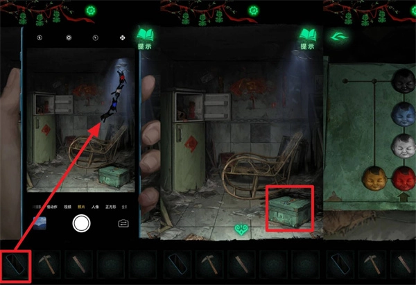 1、回到学堂,点击说书木偶旁白箱子,用【红绳】修复,再次点击触发剧情,获取【榔头】。