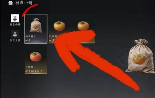 4、进入活动页面,点开柿子农小铺。连续八天买下所有能买的柿子种子,并种到田地里。