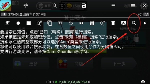 3、此刻可以看到《GG修改器》专属的悬浮窗,接着我们运行《登山赛车》。
