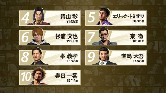 值得一提的是,主要登场在《如龙》系列衍生作《审判》系列中的杉浦文也收获了19230票,排名第六。