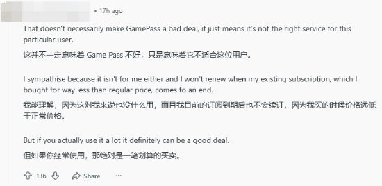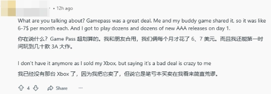 当然,也有玩家认为问题出在发帖人本身,是他自己没有利用好XGP庞大的游戏阵容,才产生了这种“血亏”的感觉:
