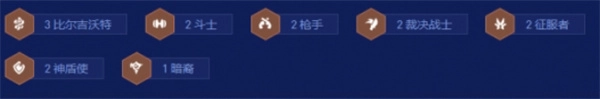 前期可用卡牌+任意比尔开局,卡牌可携带 1.5 件装备,帮助解锁男枪并激活三比尔羁绊。