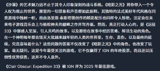 每年12月,IGN编辑团队都会对过去一年里大家共同体验、评测过的所有游戏进行复盘,再以投票形式选出他们心中的“年度游戏(Game of the Year)”。今天,他们揭晓了最终评选结果,《光与影33号远征队》斩获IGN 2025年度最佳游戏称号。