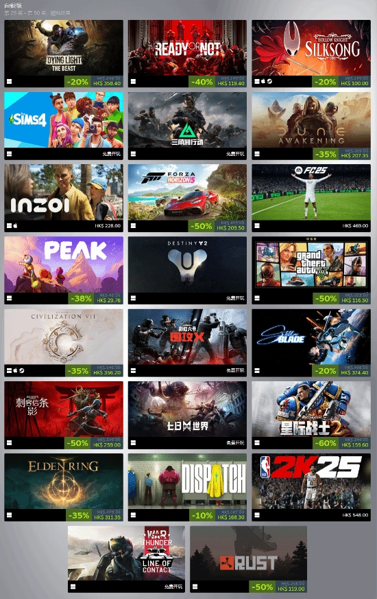 在Valve发布的2025年度热销商品铂金级榜单(第1名至第12名,随机排序)里,既包含《反恐精英2》《Dota2》《Apex Legends》这类免费游玩、皮肤付费的常驻热门,也有《怪物猎人:荒野》《使命召唤》《战地6》《Arc Raiders》等新游戏的身影。