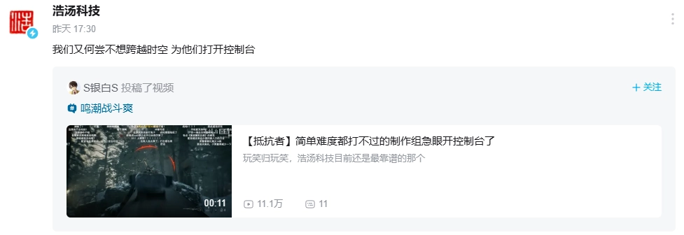 然而,浩汤科技随后在B站动态的转发文案,却令不少玩家为之动容。浩汤科技表示:“我们又何尝不想跨越时空为他们打开控制台。”