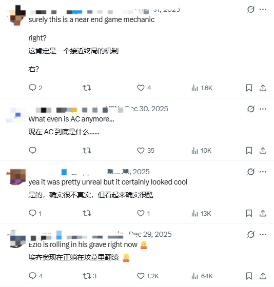 许多玩家纷纷感慨:“刺客信条的风格变化太大了,以往玩的时候都得小心翼翼地潜行接近目标。”甚至连不怎么关注新作的玩家也感到意外:“刺客信条现在已经变成这样了吗?”