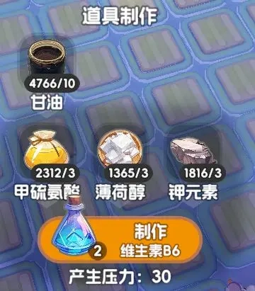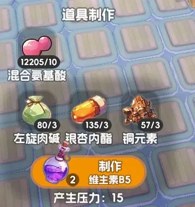 这是整个生产链的瓶颈。B5需要三个岛的一级产物,因其生产最慢,建议至少配置5-7台对应机器。B6需要二级产物和大量甘油,机器需求约为4台。B3需要三级产物和大量色氨酸,其生产速度极快,3台机器即可,但色氨酸消耗巨大。三者产生的压力递增,需提前规划降压手段。