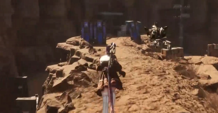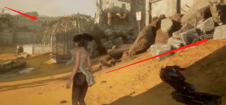 1、首先来到掩埋的废墟外围营地,营地旁边的大门处有一个机器人,击败就会掉落密码。